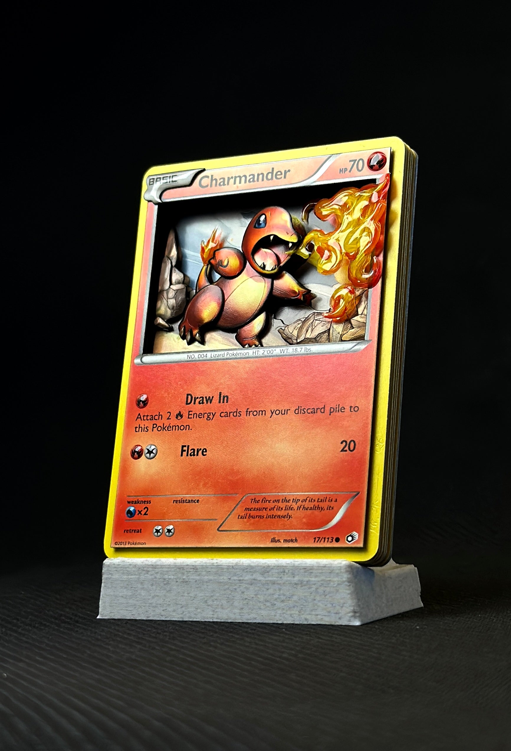 A fully handcrafted 3d shadowbox featuring Charmander from Legendary Treasures set.